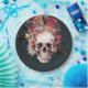 Mit einem gotischen Schädel mit blassen Aprikosen, schwarzen und bordeauxfarbenen Blume auf schwarzem Hintergrund. Entspricht der Party-Kollektion "Tod ihrer 20er".