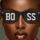 Schwarze Retro-Sonnenbrille mit dem Text "BOSS". Ideal sowohl für Männer als auch für Frauen, die Profis oder Unternehmer sind.