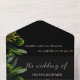 Dunkle Moody in einem Hochzeitsdesign, mit einem tiefen smaragdgrünen Waldrahmen auf schwarzem Hintergrund. Mit der zusätzlichen Funktion eines personalisierten QR-Codes, der mit Ihrer Hochzeitwebsite-URL verlinkt werden kann. Klicken Sie auf die Schaltfläche Personalisieren und fügen Sie Ihre Website-URL in den Bereich, der zur Verfügung gestellt wird, und ein brandneuer einzigartiger QR-Code wird auf dem Design generiert, der Ihre Gäste auf Ihre Hochzeitswebsite zu UAWG online leiten wird.
