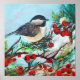 Schwarze Chickade mit Berries auf Zweigplakat. Das Design auf diesem Poster ist ein bezauberndes Winterkichergemälde. Ideal für Natur- und Vogelliebhaber! Dieses Kunstwerk ist auch auf anderen Produkten zum Mischen und Abgleichen von JennsEmporium erhältlich. Gedruckt als glänzendes Poster.