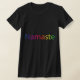 Dieser schwarze T - Shirt hat einen Regenbogen Namaste Textentwurf. Groß für Yogaliebhaber.