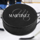 Schwarzer eleganter Personalisierter Nachname | Na Eishockey Puck