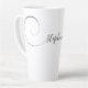 Erstellen Sie Ihre eigene große Latte-Tasse für sie mit einem eleganten Stil-Skript-Design mit extra lockigen Schwänzen. Sie können den Hintergrund und den schwarzen Schriftart anpassen. Passen Sie die Größe des Schriftartes an, oder verschieben Sie ihn nach Bedarf für längere oder kürzere Namen.
