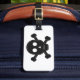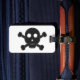 Ein schwarzer Filzschädel mit weißen Stichen. Das gesamte digitale Design.