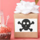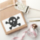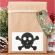 Ein schwarzer Filzschädel mit weißen Stichen. Das gesamte digitale Design.