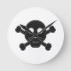 Ein schwarzer Filzschädel mit weißen Stichen. Das gesamte digitale Design.