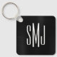 Ein einfaches dreiteiliges Monogramm-Design auf einem runden quadratischen zweiseitigen Schlüsselanhänger. Auf der Vorderseite ist das Textdesign für Ihre 3-Buchstaben-Monogramm-Anforderungen anpassbar. Im Hintergrund auf beiden Seiten befindet sich eine dunkelgraue und schwarz-ombre-metallische Folie mit digitaler Kunstgrafik in Imitate. Wenn Sie gewollt... fügen Sie Ihr eigenes Foto oder Text zur Rückseite, um Ihren eigenen personalisierten Schlüsselanhänger zu erstellen. Der digitale Kunsteffekt druckt wie ein Foto mit einem mit Monogramm Textdesign.