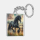 Schwarzer Fresischer Pferdeweiden Rustikaler Zaun Schlüsselanhänger