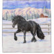Schwarzer Friesian Draft Horse Trott in Snow Duschvorhang
