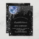 Für einen eleganten 18. Geburtstag (oder jedes Alter). Ein stilvoller schwarzer Hintergrund. Dekoriert mit Imitaten silberne Glitzer blauen Blumen. Personalisieren und fügen Sie Namen, Alter und Party Details hinzu. Der Name wird mit einem handgeschriebenen Stilskript geschrieben