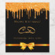 Imitate goldfarbene Schleife und Bogen mit Imitaten goldenen Glitzer Tropfen, Farbe Tropfen aussehen. Ein schicker schwarzer Hintergrund. Personalisieren und fügen Sie Ihre Monogramm, Initialen und ein Datum. Mit dem Text. Alles Gute zum Geburtstag. Goldene Buchstaben.