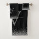Modernes Badetuch-Set in schwarz und schluckig Glitzer, elegant mit dem Skript Monogramm, Vorname und Initial dekoriert.