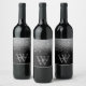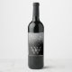 Moderne Weinetiketten in schwarz-glattem Glitzer, elegant mit dem Skriptmonogramm, Vorname und Initial dekoriert.