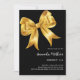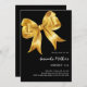 Klassischer schwarzer Hintergrund, mit einem großen goldenen Bogen dekoriert. Personalisieren und fügen Sie einen Namen und Party-Details hinzu.