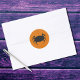 Cremefarbene schwarze Spinne auf orangefarbenem Hintergrund mit handgemaltetem Aussehen. Die perfekte Touch für Kartenmaterial, Verpackung und Briefe.