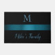 Eleganter schwarzer Hintergrund und blau-graue horizontale Streifen mit Monogramm