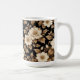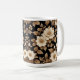 Dieser Artikel ist eine 15oz Kaffee-Tasse, die einen schwarzen Hintergrund mit goldenen Blätter und weißen Blume hat.