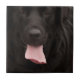 Nahes hohes Porträt des schwarzen Hundes mit der Zunge heraus. Fotografie.