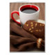 Becher mit schwarzem Kaffee und einem schokoladenbraunen Biscotti und tiefbrauner Serviette.
