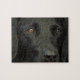 Nahes hohes/MakroFoto schwarzen Labrador-Retrievers verfolgt Gesicht.