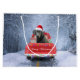 Ein Weihnachtswagen, der durch den Schnee fährt und Weihnachtsgeschenke und arbeitsreichen Hund liefert. Eine perfekte Weihnachtsgeschenkidee für jemanden, der diesen Hund züchtet.