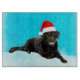 Schwarzer Labrador Hund sitzend im Schnee Weihnach Schneidebrett