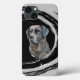 Wenn Sie oder jemand, den Sie kennen, von einem Black Labrador Retriever Dog "gehört", werden Sie dieses iPhone Gehäuse Design Liebe! Ein wunderschönes Kunstportrait eines schwarzen Labors auf einem abstrakten schwarz-grauen Hintergrund macht dieses Gehäuse zu einem auffälligen Detail. Ihr Name oder ein anderer Text ist unten in weiß dargestellt. Sie können den Text ganz einfach entfernen, indem Sie das Feld ausschneiden.