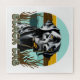 AI art Aquarell schwarzes Labor mit Vintagem Text und Sonnenuntergang mit Retrofarben aquamarin und braun.