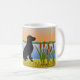 Black Labrador Bird Hund Sunset Coffee Tasse für diejenigen, die Labradors als Vogel Hund Rasse Liebe. Schönes Black Labrador Silhouette Design als Jagdhund in der Sonnenuntergangsansicht. Erstellt von Naomi Ochiai.