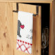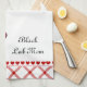 Schwarzer Labrador-Welpe und rotes Herz Küchentuch