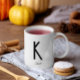 Monogram Name Coffee White Tasse erstellt durch szdesign. Minimalistischer, aber stilvoller, weißer, personalisierter Schleim mit schwarzer Anfangsbuchstabenmonogramm und Name über den Buchstaben hinweg. Ein perfektes Geschenk oder persönliches Accessoire, das einfach zu personalisieren ist (klicken Sie einfach auf den Button 'PERSONALIZE').