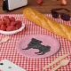 Schwarzer Mops Hund Cartoon Mops Liebe Herzmuster Pappteller