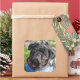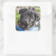 Schwarzer Mops Welpe mit einer Jacke Quadratischer Aufkleber