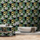 Schwarzer Mustard Brown Beige Green Circles-Muster Tapete