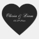 Schwarzer Name Datum Moderne Hochzeit Herz-Aufkleber