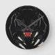 Ein schwarzer Panther, der zentral im Bild positioniert ist, wird in einer kühnen, stilisierten Abbildung dargestellt. Das Gesicht und der Oberkörper des Panther sind mit offenem Mund und scharfen Zähnen dargestellt. Die Augen des Tieres sind auffallend gelb, und die Krallen werden verlängert, was das Gefühl von Power und Aggression verstärkt. Das Fell des Panther ist schwarz, kontrastiert stark mit dem schwarzen Hintergrund. Starke, definierte Linien und Schattierungen erzeugen ein Gefühl von Volumen und Textur und zeigen die muskuläre Form. Die Beleuchtung betont die Merkmale des Panther, ohne sichtbare Schatten, was auf eine Spotlight oder grafische Design-Ästhetik hindeutet. Der Stil ist fett, grafisch und dynamisch, ideal für ein Logo oder Poster. Die Zusammensetzung und Perspektive des Bildes richten sich direkt auf den intensiven Gesichtsausdruck und die kraftvolle Haltung des Panther, wodurch ein Eindruck von Wildheit und Stärke entsteht. Wichtige Details sind die ausgeprägten Klauen und der offene Mund.