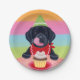 Schwarzer Labrador-Welpen-Geburtstags-Kuchen-Papier-Teller. Entzückende schwarze Labrador-Welpen-Geburtstags-Malerei. Feiern Sie Ihren Labradors Geburtstag. Schätzen Sie jedes Jahr!! Sehr niedliche schwarze Labrador-Welpenmalerei mit heitrem u. buntem Ton. Nette Geburtstagsgeschenke für Hundeliebhaber die Liebe schwarze Labradore. Gemalt durch Naomi Ochiai.