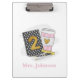 Diese zweite Klasse Lehrer Zwischenablage ist ein stilvolles Geschenk, um einen Lehrer behalten organisiert. Das Muster hat ein schwarz-weißes Polka Dot Notizbuch mit einem goldenen Zwei, Herzkaffee, Lineal, Stift und Bleistift. Dieses schwarze Polka Dot Notizbuch Design kann auf anderen Artikeln in meinem Shop gefunden werden, PageCreativeDesigns.