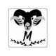 Schwarzer Widder mit verdrehten Hörnern, gemacht in einer Silhouette Schablone hybid Stil. Das Oberteil des Designs ist der Schafskopf und das untere Ende des Designs ist eine schwarze Rebsorte, dazwischen ist der Text, der sagt: "M" m ist für Monogramm sortiert.