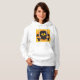 Ein Schädel und Querknochen mit einem orangefarbenen leuchtenden Hintergrund. Dieses Design sieht wirklich effektiv aus bei diesem weiblichen Hoodie