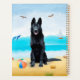 Der schwarze deutsche Schäferhund, der am Strand sitzt, ist eine Geschenkidee für jemanden, der diese Hundezüchtung Liebe hat.