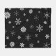 Diese niedliche und gemütliche Fleecedecke besticht durch fallende Schneeflocken auf schwarzem Hintergrund.