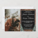 Einladung zur Hochzeitskarte. Rustikales braunes Holz, schneebedeckter Hintergrund und schneebedeckter Wald. Gemütlicher Vintager Landstil. In unserem Shop sind weitere Artikel in diesem Stil erhältlich. Sie können das Design weiter bearbeiten, Farben, Schriftart ändern und zusätzlichen Text hinzufügen, indem Sie auf den Link "Weiter anpassen" klicken.