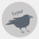 Fügen Sie einen Namen oder einen anderen Text hinzu, um benutzerdefinierte Aufkleber zu erstellen. Diese Aufkleber zeichnen sich durch eine realistische Stildarstellung eines Set der Krähe vor einem hellgrauen Hintergrund aus.