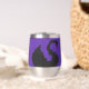 Das Bild, das auf einem Getränk oder Wasserflasche gedruckt ist, stammt aus einem Foto eines originalen, gekreuzten Schaffens, handgefertigt und Copyright © des publizierten Designers Delores Chamblin. Das Bild der einzigartigen handgefertigten Kreation mit schwarzer Schwan-Silhouette wird auf dem thermischen Trinkbehälter für kalte und warme Getränke wiedergegeben.