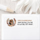 Die links Seite dieser Rücksendeadressen-Aufkleber zeigt ein hübsches kleines Schwarz-Weiß-Spitz-Portrait. Das Bild ist in einem hübschen Herbstblumenkranz und Blätterkranz in Braun-, Bräunungs- und Cremetönen eingefasst. Ihr eigener Text ist rechts in schwarz und goldbraun.