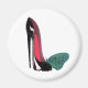 Schwarzer Stiletto High Heel Shoe und grüner Schme Magnet