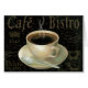 © Daphne Brissonnet/wildes Apple. Eine schwarze Schale heißer Kaffee mit einem Saucer und einem Teelöffel. Französische Wörter können auf dem schwarzen Hintergrund gesehen werden.
