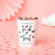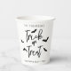 Servieren Sie Ihre Gäste mit diesen festlichen Halloween-Papiertassen im sprichwörtlichen Stil. Das Design beinhaltet Trick oder Treat in schlichter schwarzer Schriftzeichen-Typografie mit spielerischen Fledermaus-Silhouetten auf weißem Hintergrund. Personalisierbare Textbereiche oberhalb und unterhalb des Designs ermöglichen es Ihnen, einen Familiennamen, Party oder ein Jahr hinzuzufügen, z. B. Halloween-Party 20YY. Eine moderne und minimalistische Wahl, ideal für saisonale Ansammlungen, Trick-oder-Leckerei-Veranstaltungen und Halloween-Feiern.