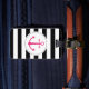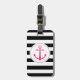 Gestreifter Schwarzweiss-Gepäckanhänger mit einem rosa Anker in der Mitte.